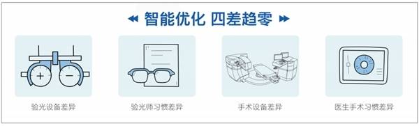 从术前检查到手术设计再到实施手术,中间的四个关键环节都有可能受到各种因素的影响从而导致手术误差,如验光设备差异、验光师习惯差异、手术设备差异、医生手术习惯差异。得益于VISULYZE科学分析软件,全飞秒精准4.0可以很好地降低以上差异,把每个变量的误差降至最低,从而获得精确性与准确性并存的科学矫正参数。