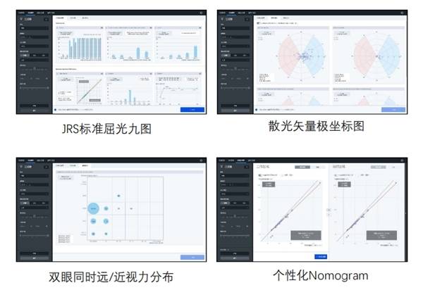 全飞秒精准4.0手术可以生成屈光数据可视化图表,包括JRS标准屈光九图、双眼视力图、极坐标图,医生可以基于以上数据模型,根据每位患者的眼部情况进行对比和调整,为患者建立个性化的nomogram。同时,患者也可以看到一份可视化的专属手术参数设计报告,这份报告详细展示了自己的眼部数据、手术方案以及预期效果。无论对于医生还是患者,手术方案设计都更加透明、直观。