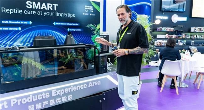 本次展会的亮点——灵犀智联系列,是REPTIZOO(瑞皮)在智能养宠领域的最新成果。该系列集成智能控制技术,可对爬宠生活环境的温湿度、光照等关键参数进行精准监测与智能调控。用户通过配套的手机APP即可实现远程操控,实时掌握宠物状态,有效降低了爬宠饲养的难度,实现了“智慧养宠,轻松管理”的现代化饲养理念。