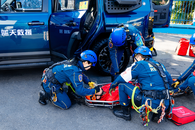 基地参观结束后,蓝天救援队队员现场开展专业救援演练,聚焦绳索救援、人员紧急医疗救助等核心场景,展现了规范的操作流程、高效的团队协同与过硬的专业素养,充分践行了“严格训练、严格要求”的管理理念。演练过程中,队员们快速响应、精准操作,将应急救援的专业性与紧迫性直观呈现。在场队员的专业演练,也为后续产品赋能救援的合作方向提供了实践参考。