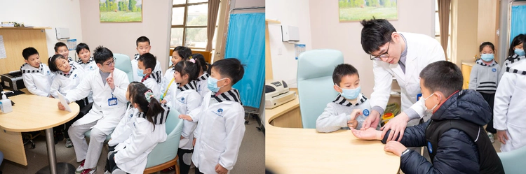 七宝外国语小学二(5)班同学们与医师合影。