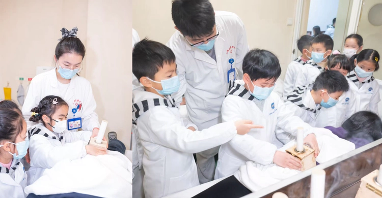 针灸、艾灸与电疗体验区同样热闹。医师借助模型讲解穴位与疗法原理,强调操作安全。孩子们仔细观察艾绒燃烧的温热熏灼,注视着电疗仪的轻柔刺激,问题一个接一个:“扎针疼吗?”“艾草为什么能治病?”……医师一一解答,寓教于乐。