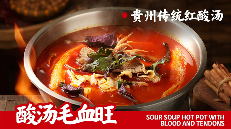 “虾滑毛血旺”中,鲜黑虎虾滑的Q弹与红油锅底的麻辣交织;“酸汤毛血旺”里,贵州传统红酸汤的醇厚与本地食材的鲜美融合。每一锅,都是对贵州“酸、辣、鲜、香”的致敬。品牌创始人团队深入贵州各地,走访非遗传承人,精选地道食材,坚持传统工艺熬制锅底,只为还原那一口“妈妈的味道”。