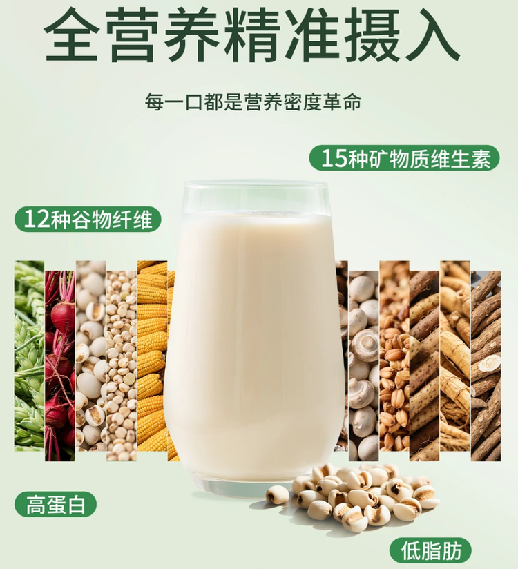 尽管热量低,但产品的营养密度极高,富含10.89g优质蛋白,助力肌肉合成与修复,避免肌肉流失;同时含有15种维生素矿物质,涵盖维生素A、B族、C、D、E以及铁、锌、钙、钾等多种人体必需的营养素,精准填补减脂期易出现的营养缺口;此外,还添加了12种谷物膳食纤维和24种8大类关键营养素,全面覆盖人体减脂期间的营养需求,防止因营养不足引发代谢系统紊乱,为突破平台期提供坚实的营养基础。