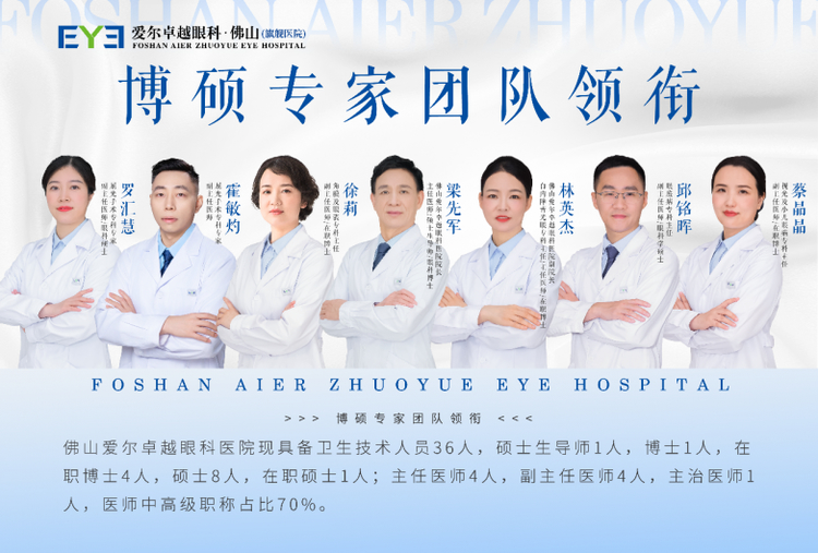 医院由爱尔眼科佛山地区总院长梁先军教授(主任医师、眼科博士)领衔爱尔眼科进驻佛山区域的首批医师团队(至今已11年),打造了一支高学历、高技术、高水准的博硕专家团队,现有卫生技术人员中,中高级职称占比达70%,博士、硕士占比超半数,人才梯队完善、专业结构合理,诊疗实力稳居区域前列。